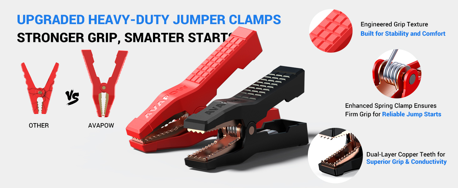 - Supreme Jumper Cable: Dual layers of metal & larger clip,more stable, conductive & ergonomics