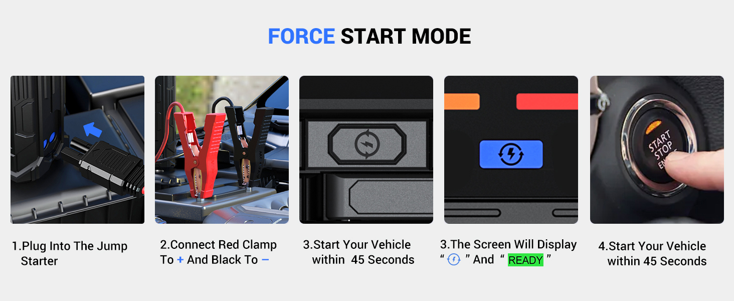 - Jump Start Ability: Up to 10L gasoline / 6.5L diesel engine, suitable for all 12V car, truck, motorcycle, boat, RV or tractor ATVs, UTVs, lawnmowers, snowmobiles, etc.